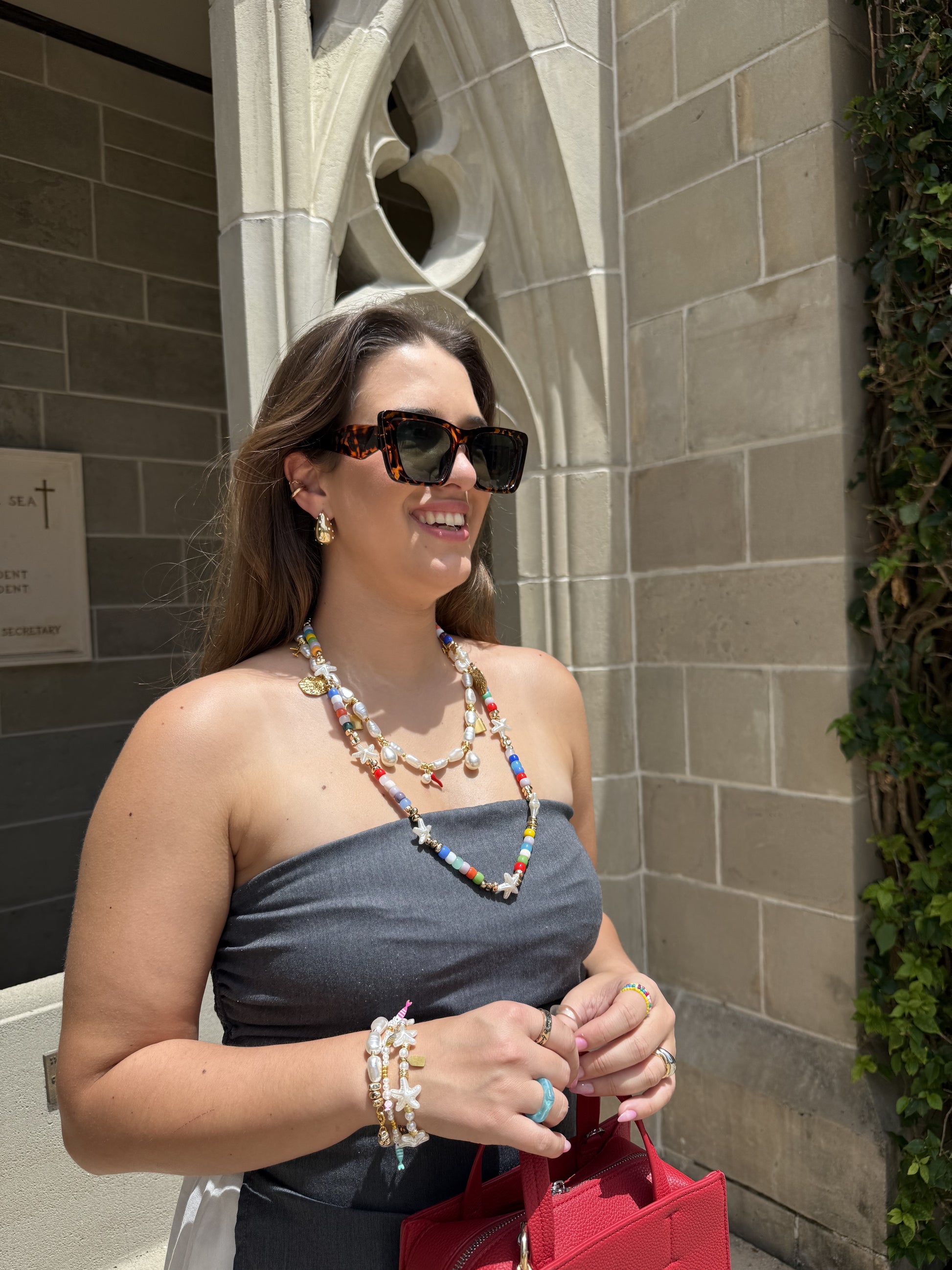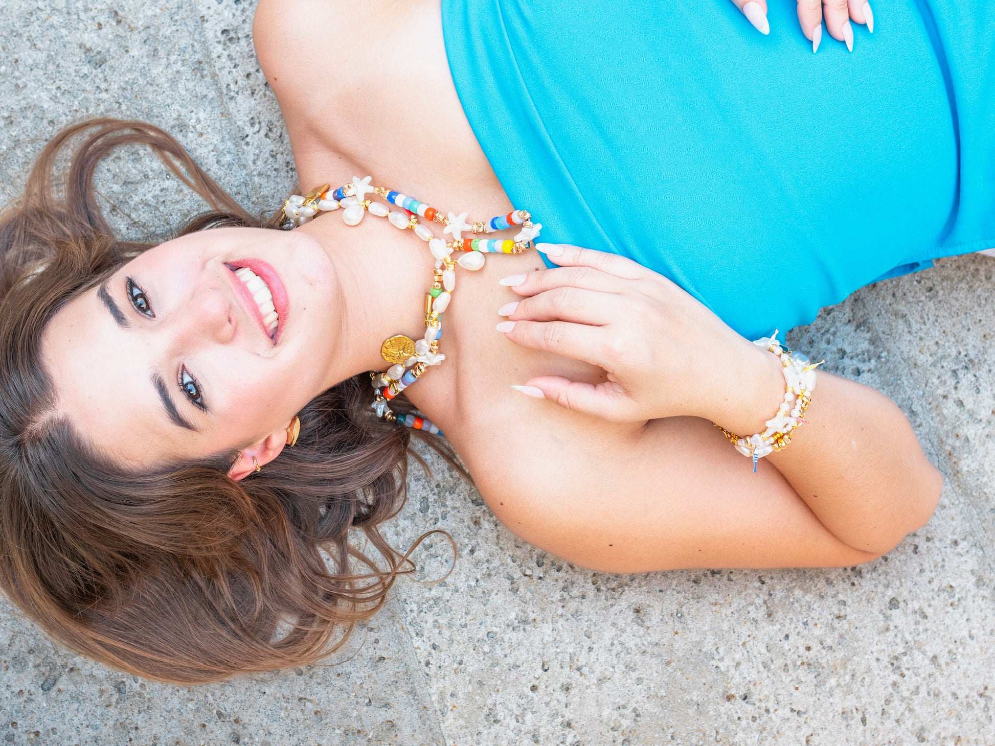 A trio of handcrafted necklaces designed to be worn together or apart, each telling its own story while harmonizing as a complete look. Made with lustrous pearls, vibrant beads, gold-plated details, and meaningful charms, these pieces weave together Italian tradition and modern versatility.