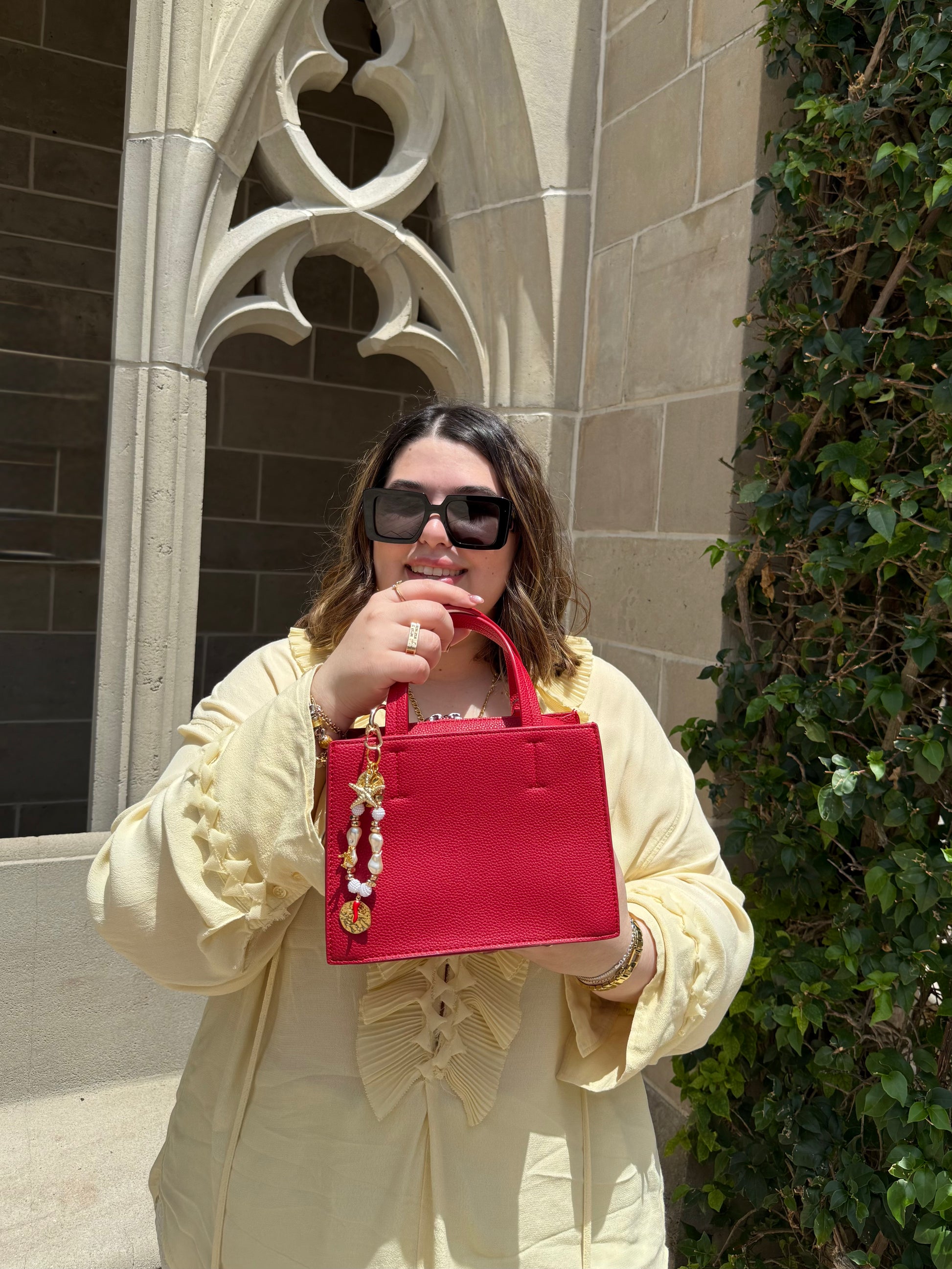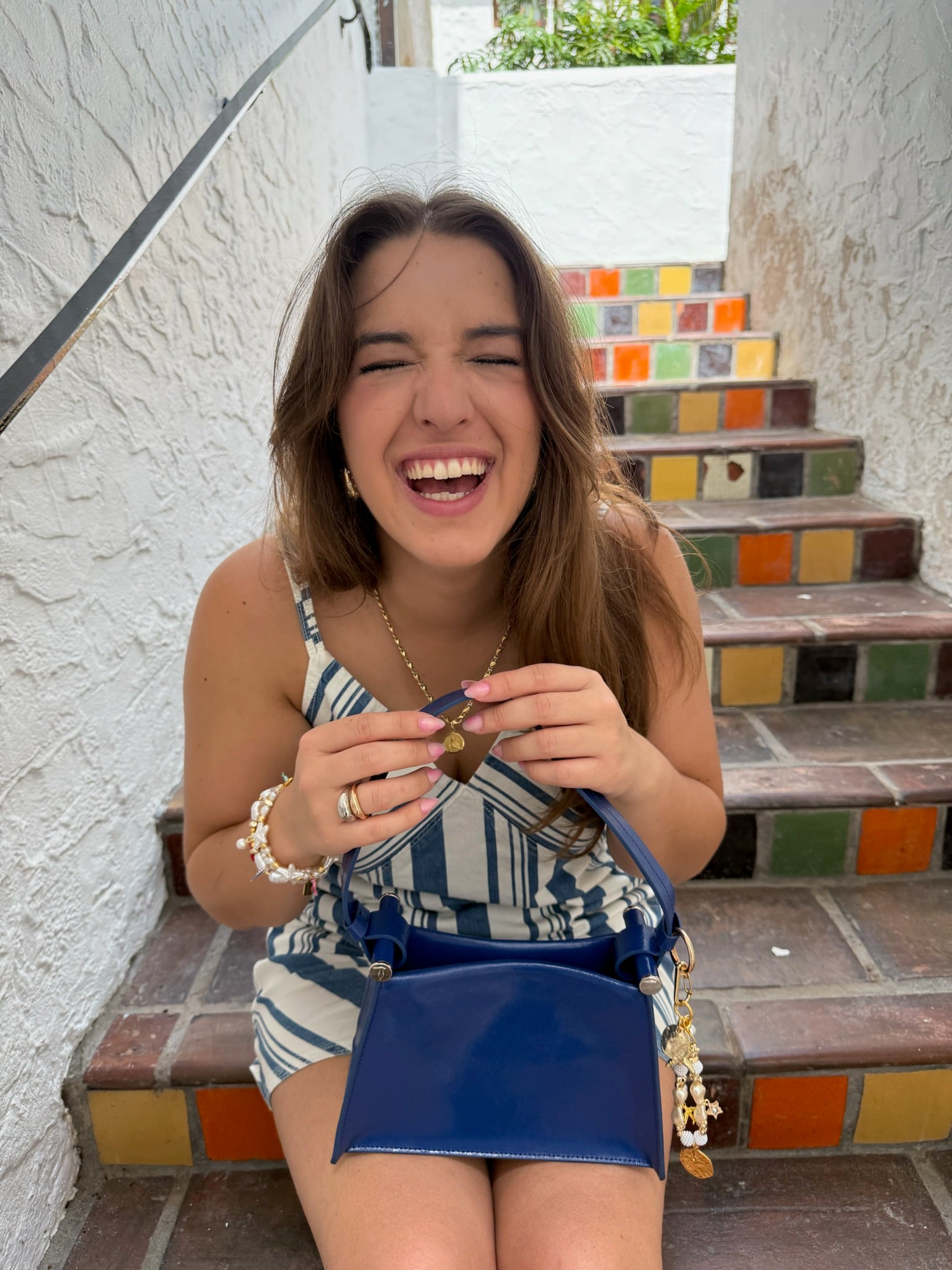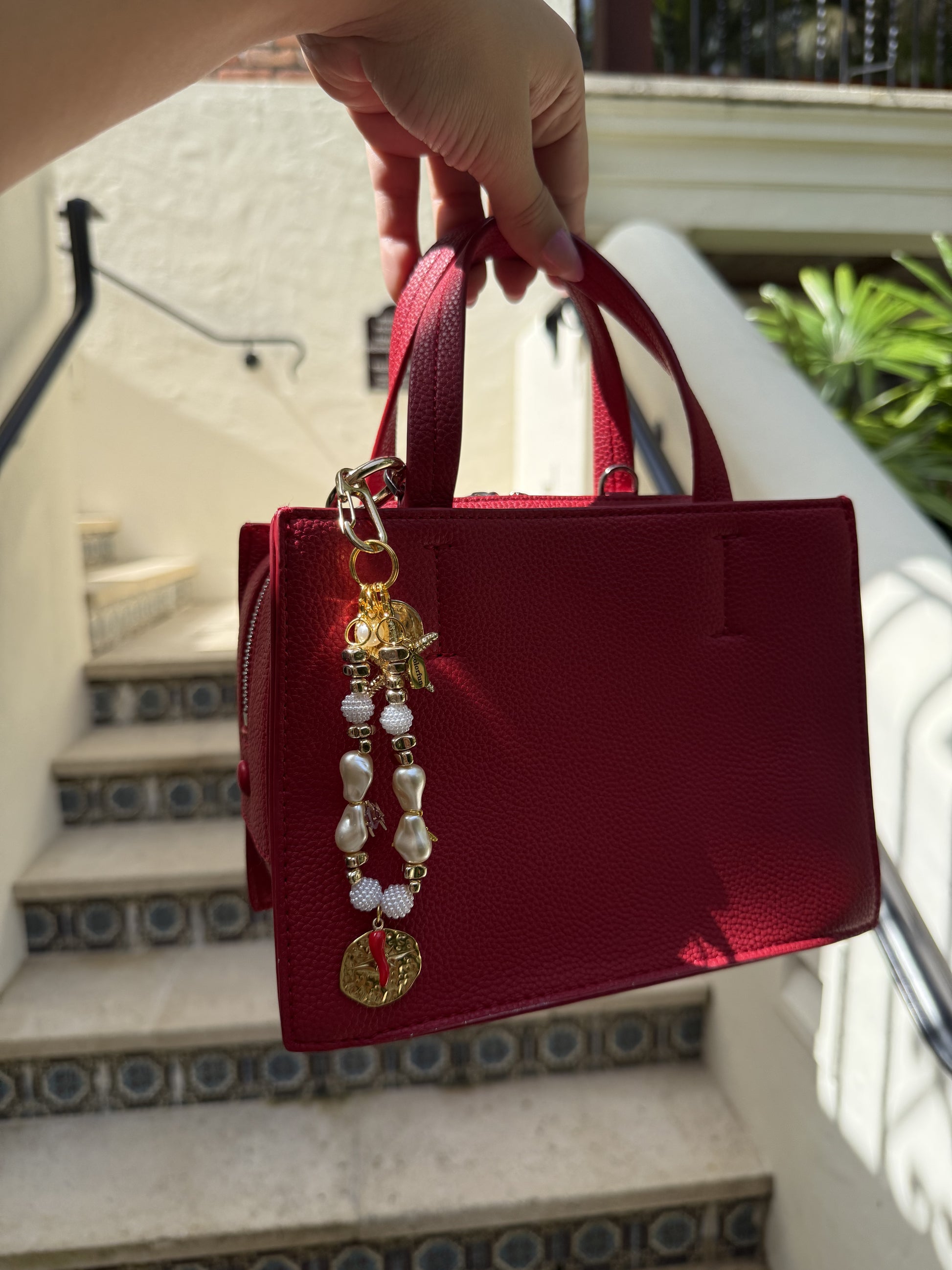 A coastal-luxe treasure handmade in Italy, Traghetto features baroque pearls, gold-plated accents, vintage coin medallions, a lucky peperoncino, and a playful airplane charm. The perfect blend of elegance, wanderlust, and fun to elevate any handbag or keyring.